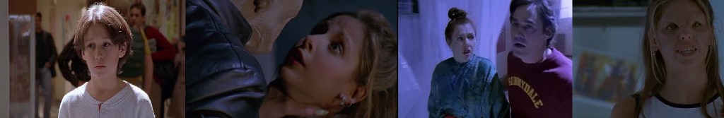 Buffy dreams of meeting the Master, and as he leans in to bite, her mom wakes her up. They talk about Buffy’s plans to spend the weekend with her father. At school, Buffy and Willow talk about Buffy’s parent’s divorce then go to class where they meet up with Xander and discuss “Active Listening.” The teacher asks Wendell, another student to read, but as he opens his book tons of spiders crawl out and onto him. As this happens, a young boy stands at the doorway and watches.