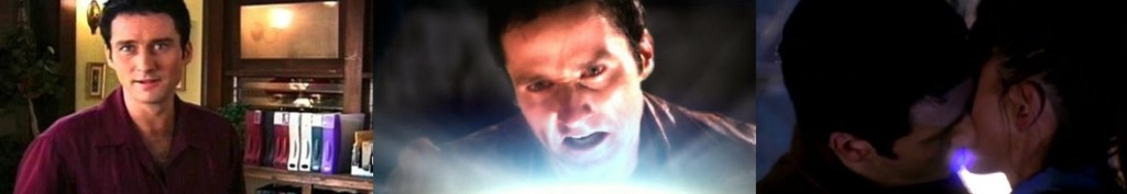 Doyle won’t let Angel do it, and he knocks him off the platform and to the ground. Doyle kisses Cordelia, and a small purple haze travels from him to her, then he jumps out onto the light. The light burns him as he struggles to break the cable, but he finally does and then the light destroys him. In the end, Angel and Cordelia sit in the office and watch the commercial with Doyle in it.