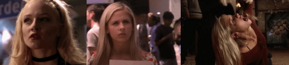 After some research is done, they locate Sunday’s lair. A weaponless Buffy accidentally crashes in and ends up fighting with the vampires again. Sunday steps on Buffy’s golden umbrella which she received on Prom Night for being “Class Protector” and suddenly Buffy snaps into Slayer mode. Willow and Oz go to Buffy’s dorm and find her and all her stuff gone, but Xander arrives and vaguely fills them in on the danger that Buffy is in. Back at Sunday’s lair, Buffy finally starts kicking some butt and uses her resources. With a little help from Xander, Willow and Oz, Buffy kills Sunday and her lackeys. The Slayer and her Slayerettes are back in action. Giles, who finally came to realize that he has to help Buffy, shows up just as they’re leaving.
