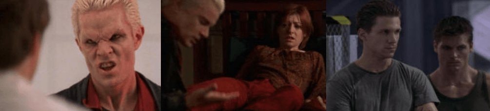 A packet of blood drops down from the ceiling into Spike’s cell, but before he drinks it, another vampire from the cell beside him warns him it’s drugged. It’s Sunday’s former henchman Tom, and he tells Spike that the people starve the vampires and then feed them drugged blood before doing tests. In class, Willow asks Riley about Oz, but he tells her he dropped out. After Willow tries to tell him that Oz will return, Professor Walsh informs her that he won’t be back to her class.