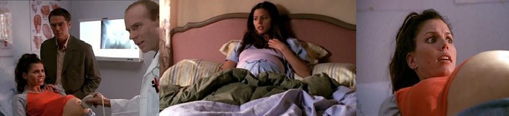Angel gets information that sends him to Serena, the friend who set Cordelia up with Wilson in the first place. Angel discovers that Serena is also a victim, and just as pregnant as Cordelia. At the doctor’s office, it is eventually determined that Cordelia is eight and a half months pregnant with seven demon babies. Wesley makes Cordelia comfortable, and she gets upset when she realizes he’s scared of what’s inside of her. She can hear the babies trying to communicate with her, but can’t understand anything they’re saying.