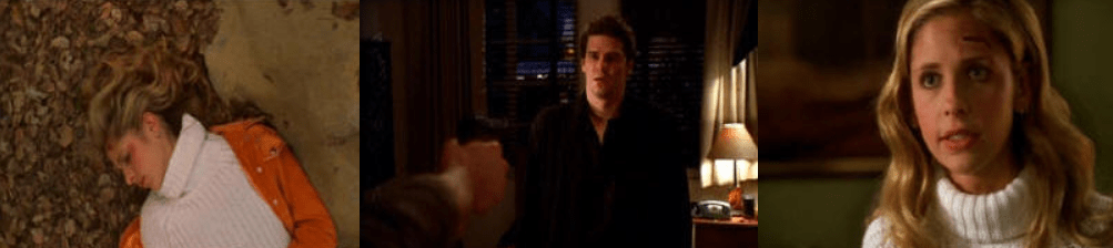Colonel McNamara talks with a Lieutenant about plans for the Initiative, getting Riley back and dealing with Buffy. Spike tells Adam that Buffy is going to be a difficult challenge to defeat and he shouldn’t underestimate her. Spike talks about killing two Slayers and not being able to kill Buffy, especially because of the chip now in his head. The two plan to separate Buffy from her Slayerette friends. Still upset about Angel, Buffy returns from L.A. to her empty dorm room. Xander brings Riley some rather colourful clothes to wear, and they talk about their mutual distaste for Angel. Not realizing he didn’t know, Xander accidentally tells Riley about how pure happiness with Buffy is the trigger that sets Angelus’ evil free.