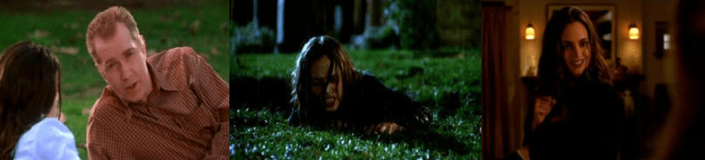 When Faith crawls out of the grave, she takes a couple of steps. In the next shot she’s several feet away from the grave.