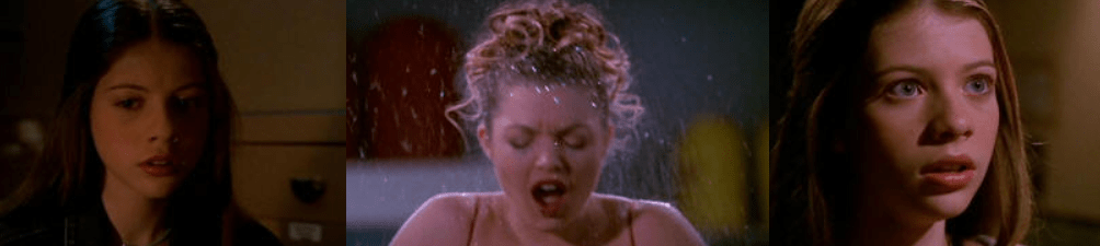 Buffy’s birthday parties always end in disaster: in Surprise she was almost killed by the Judge; in Helpless she loses her powers; and in A New Man she almost kills Giles. Meanwhile, Willow is having fun: she’s blowing bubbles, something she also did at Tara’s birthday party in Family.