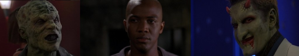 Angel and Wesley investigate a bookie friend of Merl’s only to find the demon murdered similarly to Merl’s death. A presumably kind demon walks through the sewers alone, but is attacked and killed, one of his killers being Gio. Gunn shows up at the bookie’s apartment in response to Wesley’s call for assistance. He doesn’t like the idea of investigating demon deaths, thinking the murders aren’t all that bad. Wesley explains that the murders are committed without any consideration of the differences between good and bad demons. Gunn pockets the arrow from a crossbow bolt used to kill one of the demons then is off to search for information.