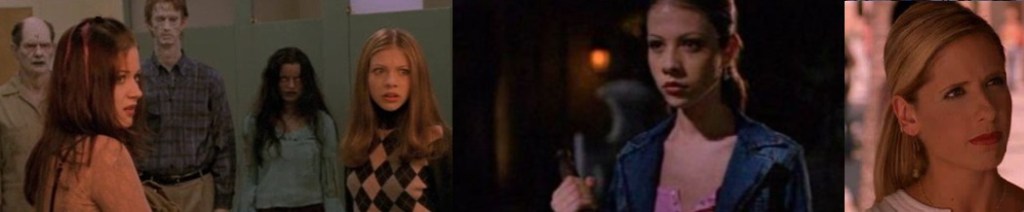 Anyanka and Halfrek have drinks at the coffee house while they watch a couple of singers perform. Halfrek points out that Anyanka is losing her “evil” touch and that she needs to start acting more like a Vengeance demon because something evil and incredibly old is about to surface and Anyanka cannot afford to be borderline evil. Buffy reports to Xander about what she saw in the bathroom and worries that the return of Sunnydale High School is a sign of something bad. A student asks Dawn for a pencil and Dawn hands him one only to have the student be a zombie creature that stabs her in the face with the pencil. Dawn freaks out and as all eyes in the classroom turn on her, she realizes she’s not injured and excuses herself to the bathroom to recover from the second major embarrassment of the day.