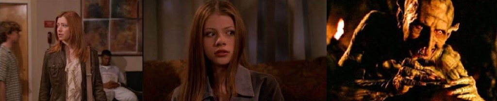 Willow goes to Anyanka for help in finding the demon that skinned the guy at the construction site. Anyanka helps Willow cast a spell to locate demons all over Sunnydale. After the spell is complete, Willow asks Anyanka to teleport to one particular location, but Anyanka reveals that she can’t for non-vengeance business as a result of her recently undoing a spell. Instead, Willow takes the long way and walks there herself. Dawn searches demons on the computer and although Buffy thinks it’s a waste of time, Dawn finds a demon that meets their specifications named Gnarl. The demon paralyzes its victims with its nails and then eats strips of skin from the body and drinks the blood.