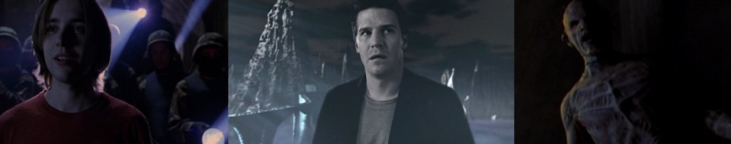 Fred and Gunn find Matthew in an alley and try to convince him to return with them. He refuses, and to stop him from screaming, Wesley knocks the boy unconscious. Fred is stunned by the action, but helps Gunn carry the boy back anyway. Back in the demon’s lair, Wesley is cornered by the demon as it prepares to kill him, but Angel arrives in time to stop it. Lorne lectures the rest of the gang about hurtful words just before Gunn and Fred return with Matthew. Golden doesn’t like the situation as it unfolds, but Gunn defends Matthew’s unconscious state as a matter of necessity. Matthew begins to laugh in Jasmine’s voice, interrupting the fight, and confirming Matthew’s exposure to Jasmine. Jasmine’s voice turns the others on Gunn, Lorne and Fred and the three run for their lives. Before they can get far though, they run into Connor and a group of military men to back him up.