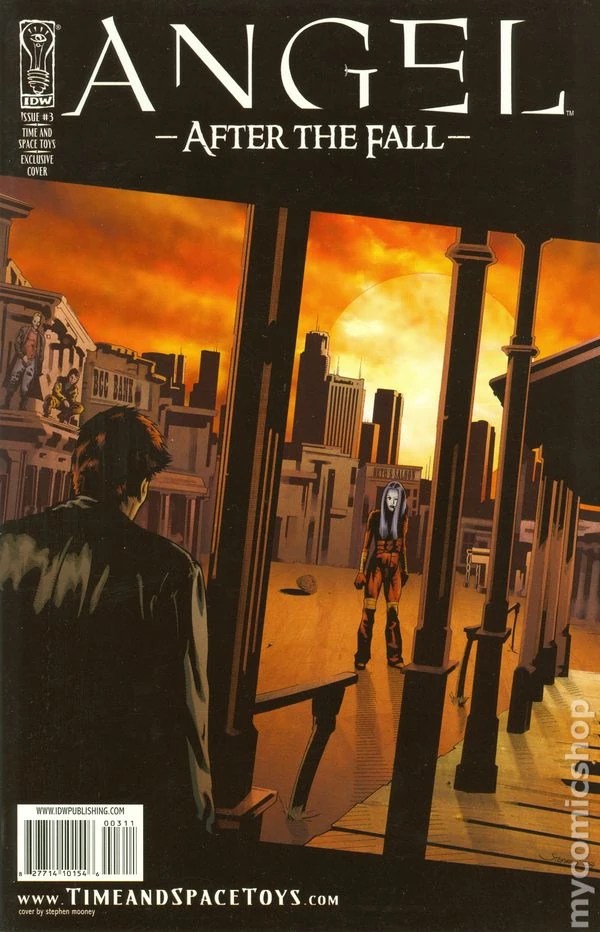 Angel thinks about the effect Hell has had on Los Angeles. The sun and moon both being in the sky has had an effect on demons and vampires alike, heightened senses pumping their bloodlust. It hasn’t, however, had any effect on the abilities of primordial Old Ones, such as Illyria, as he discovers after being thrown through a building.