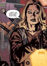 Connor struggles in the demon’s grip, debating his next move. It’s made for him as a blonde woman, Kate Lockley, stands in front of him, her rifle still smoking from shooting the demon.