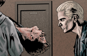“I knew he gained weight,” Spike retorts sarcastically. He brings up the Shanshu, but Wesley confirms this isn’t it – although they do now know how, and for whom, that prophecy refers to. Spike insists he doesn’t want to know – he’s not bothered. He starts to leave the room – he’s desperate for a cigarette.