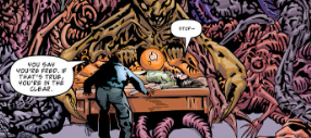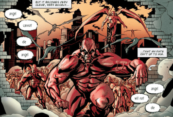 The demons, prepping Angel are suddenly swept aside by massive tentacles. Team Angel don’t fare any better. Angel awakens – the machine is healing him. He becomes more and more aware of what’s happening around him, but it’s chaos.
