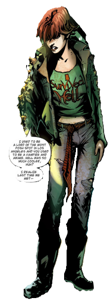 Gunn gets up and watches as Non rants about her life now: she was something in Hell, somebody important, but now; she’s homeless and no one will talk to her. She’s been cast aside because of her actions during the Fall. She starts to drain passers-by, who instantly begin to rot and die.