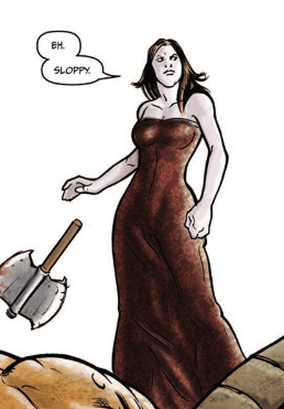 Two demons tell her it’s time for her to go – this has nothing to do with her, but Drusilla is silent as she dispatches them with an axe. “Sloppy” she declares, as she strides out of the room.