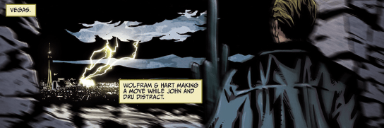 The ground shakes. For a minute, Spike thinks they’ve gone to Hell again. But, as he looks over at the centre of Vegas, he sees crackling energy flashing upon where Wolfram & Hart’s offices were. It almost looks like a dimensional tear. They’re making their move, whilst I’m distracted.