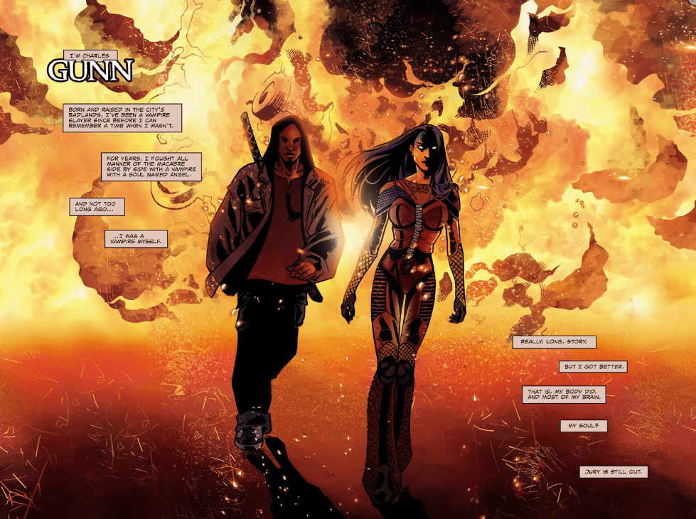 Gunn’s sister Alonna was seen in War Zone, where he also saw her transformed into a vampire and dusted by Charles.