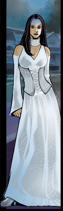 Less than an hour later, after packing a bag and showering, Charles is outside, pulling up in his old beat up truck. He knows why he’s doing this, but is unsure why Illyria is. She comes outside, and takes his breath away: a beautiful white gown, slinky and flowing. He suggests that it’s nice, but perhaps not ‘funeral attire’. She changes her clothing into something darker, more casual and trendy, but seems disappointed by his reaction. Before he can explain, she demands that they depart – immediately.