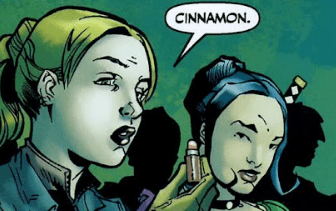 Satsu’s fellow Slayers congratulate her on being picked to work with the one and only Buffy. Satsu shrugs it off. Don’t embarrass us, they tease. As Buffy prepares to enter the portal, Satsu stands next to her, ready as she’ll ever be. Buffy asks to borrow her lip gloss and Satsu obliges.
