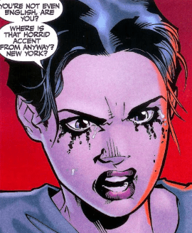 Genevieve is not so easily swayed, and strikes her with the handle of the axe. “You’re not even English are you?” she queries, hate dripping from her voice. “Where is that horrid accent from anyway? New York?”