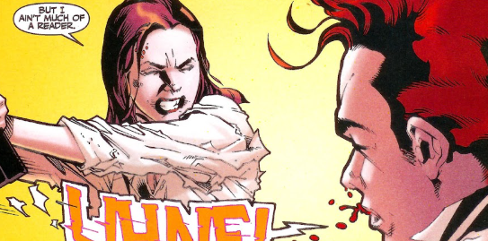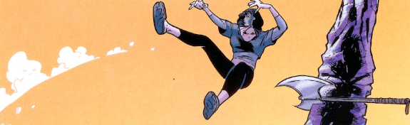 Faith bounces off the floor, kicking Gigi in her gut. “Maybe he trusts you. Maybe he don’t. But either way, part of you knows something ain’t right, cause you don’t deserve to be loved.” Faith is well aware that her words could also apply to herself. She watches as Genevieve goes flying, knocked backwards by Faith’s strike – and is impaled on her axe, still embedded in the tree from Gigi’s first blow.