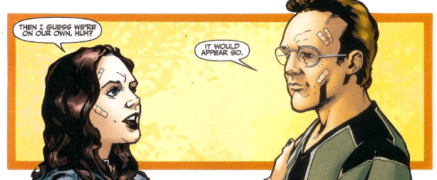 Giles is impressed. In fact, he wants to join her in her new mission. He and Buffy are not on speaking terms, he tells her. It appears that the two of them are on their own. But at least they’re not alone – they have each other.