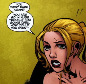“Oh, my God! You went dark again,” Buffy is stunned. Not speechless, but epically peeved! “You are so in huge trouble for going Dark. How could you even…” she stops, dead in her tracks, a look of horror slowly coming into view on her face. “Is Kennedy okay?”