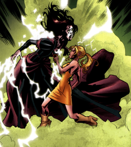 With that, Buffy’s time is up. It’s now or never. She tenses herself. Deep breath. Somehow, she’s not sure how, but she plunges the pointy end of her Scythe through Willow’s heart. She shrieks, but only silence can be heard. Green, magical energy erupts from the witch’s body, sending bolts of energy high into the sky. A world recognising the passing of it most powerful inhabitant – and rejoicing. As Willow falls to the floor dead, Buffy leaps for the portal, just as Melaka grabs for her. The portal flickers, unstable, its edges crackling with energy. Buffy has seconds – no, less. She lunges, Melaka’s fingers brushing her wrist before the world twists and she’s gone.