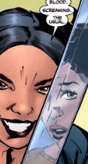 As the other Slayers enter the room, Satsu picks up Kennedy by her throat. Kennedy fights back, and Satsu, now red eyed, asks her: is that all you’ve got? Kennedy responds with a swift kick to her guts.