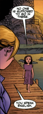 The boat ride to the island is quiet. Buffy and Andrew don’t speak a word. As they arrive at their island destination, the beauty of the place belies it’s threat. As they dock their boat, a young girl approaches them, telling them that they’re not supposed to be here. They taught her in school here, until the angry woman came. She came to the island and declared it was hers and told everyone here they’d have to move. She says her grandmother said no and was hurt by the angry woman, and most of the people fled, apart from those who simply had no where else to go. Buffy tells the young girl that she is going to talk to the angry woman. “She can’t just take your home,” she assures the child. “Someone needs to explain that to her.”