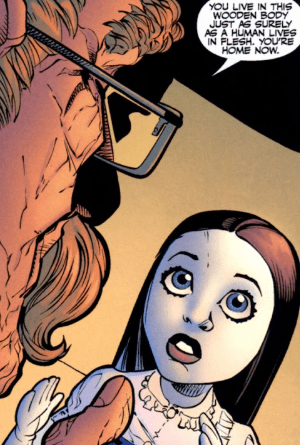 Dawn insists that he let her go, but he tells her that he had to repair the crack in her face – or otherwise her essence would escape the doll and she’d burst apart. She’s stuck in this body and will live in it as a human lives in flesh. He creepily tells her that she’s home…