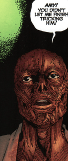 Before Andrew can call out, Warren shushes him. He tells his old friend that he’s dying: Amy has withdrawn her help in keeping him alive, and slowly and painfully, he’s falling apart. Before he dies, he’s come to Andrew, to make peace with his life and, hopefully, he says, patch things up between them. Andrew is horrified: Warren made him a killer! Warren tells him that he was misled as well: he thought they would be like Gods, as they always dreamed about. He knows what shame is now, and reckons Andrew must feel that too, especially since he’s hanging around with Public Enemy Number One, with the Slayers. He asks Andrew if he’s sure he’s on the right side. He is about to offer Andrew a proposal, but one of the Slayers suddenly bursts into the room. She’s flung aside by a large beast. She’s dead.