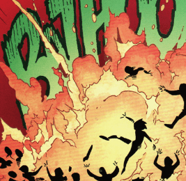 Upon closer inspection, Xander, in horror, realises that the catapults are being filled with impact bombs, grenades and napalm! Buffy orders her group back away from the roof edges and a napalm bomb goes off, reducing many Slayers on the front lines to ash, completely blown away. Buffy is horrified. One of the Wiccan Slayers drops dead, a brain-fry, Willow confirms.