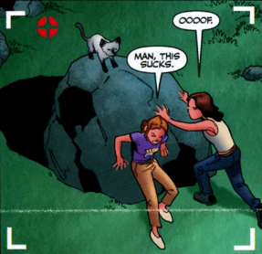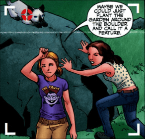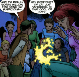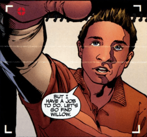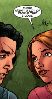 Hmmm. A cryptic reference. What does Xander want? Is it something Twilight can provide for him, perhaps? I investigate further. I investigate more. The next time I see Xander, he’s taking the time to just sit with his friend Buffy and yak.
