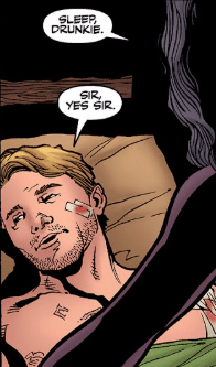 She stares at him. Finally, she responds: “Did they give you the most morphine?” Riley chuckles. “Plus a few shots of Jack, but I think I’m good to drive.” She tells him to get some sleep (“Sleep, drunkie”) and he obeys, calling her ‘sir’.