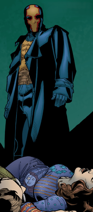 In his base, in seclusion, Twilight is standing over his prisoners. He’s talking to them, despite them being unconscious on the ground at his feet. “For a while, they’ll be lost,” he starts. “So much destruction, so many fallen… Factor in the confusion spell my own wiccans tossed into the field and it will be hours before you are missed, days before you are sought. But when Buffy realises what she’s missing, such powerful members in her makeup…” He looks down at them, one at a time, first to Giles. “Her trust.” Then at Faith. “Her guilt.” Then at the bloke who’s name he can’t remember “whose name will come back to me…”