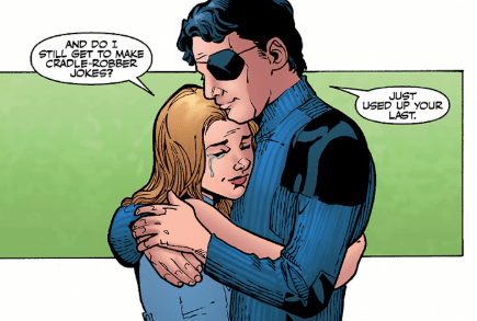 Buffy apologises, declaring herself the worst person in the universe. Xander agrees to forget their conversation ever happened. They hug and she asks about the cradle-robber joke. Xander taps her shoulder. “You just used up your last.”