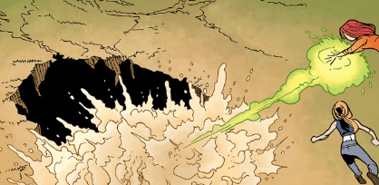 In the sky’s above China, Willow is battling the three goddesses. She’s not doing well and one of them kicks her with it’s foot, sending the witch miles away with one blow. As she recovers, Willow’s aware that she doesn’t stand much of a chance, but she’s determined – they will not reach a populated area. As she surges herself up for another assault, her powers suddenly falter, and she begins to drop out of the sky until she manages to stabilise herself.
