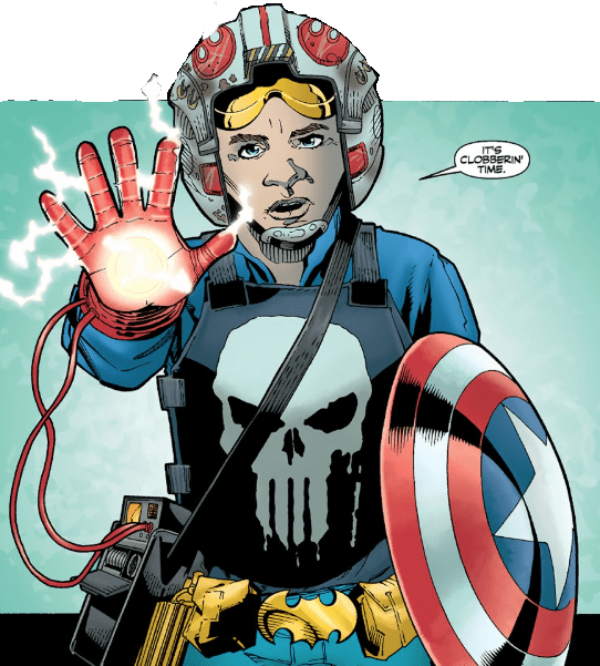 Twilight is relishing in his newfound knowledge when he’s hit behind by what he calls a frisbee. It’s Andrew. He’s armed with a replica of Captain America’s shield and Iron Man’s armoured gauntlet. And he knows how to use them!
