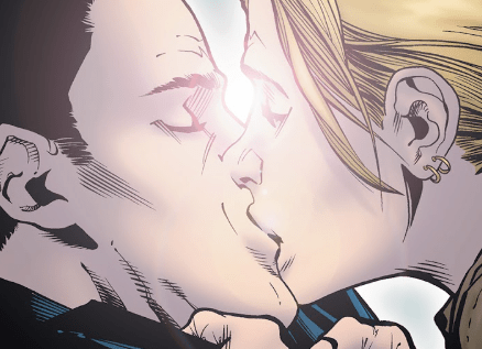 She looks up into his face. She floats up slightly, so her eyes match his. She gazes into them. Angel. She kisses him, a kiss that becomes more and more intense.