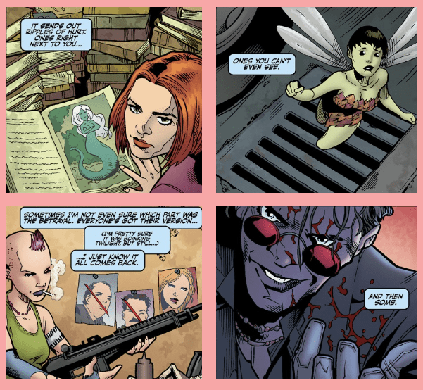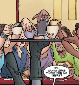 Dawn brings the coffee over to Buffy, sitting at the kitchen island in Dawn and Xander’s new apartment in San Francisco. She asks Buffy if her nightmare was Spike and Angel, getting it on, again. Buffy shakes her head. “Worse. Like, true.”