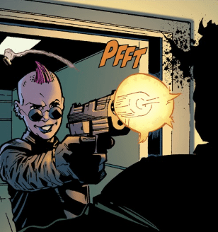 She looks down at the one on the ground. “You getting this, breathless? I’m Buffy, the Vampire Slayer. And you’re a bunch of whiny thugs. You come after me again, so much as look at me funny, and then I will fight you.”