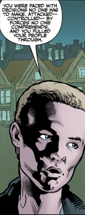 Spike ignores her. “But I know the truth. You were faced with decisions no one has to make. Attacked and controlled by forces no one comprehends and you pulled your people through. Honestly, screw anybody who thinks they could have done it better. The world was on fire. The world is always on bloody fire and you’re always right in the thick of it and the only difference this time is that people actually noticed.”