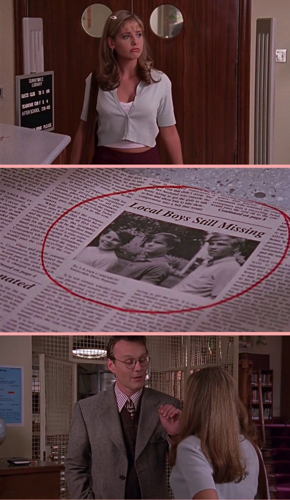 Buffy stepped into the library, her footsteps echoing in the quiet space. It was deserted, the shelves stretching out around her in heavy silence. She hesitated, glancing toward the checkout counter, where a newspaper lay open. A picture had been circled – Local Boys Still Missing. The headline prickled at her nerves.