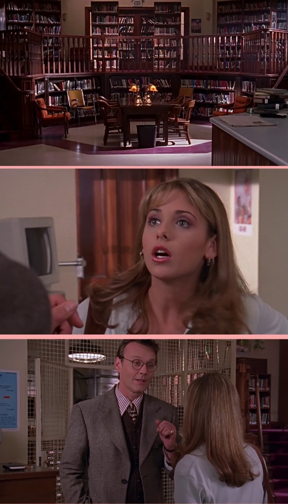 He’s actually here because he’s heard some rumblings while Buffy’s been serving cappuccinos: someone is coming for her. He doesn’t know who, but he has her back, since, technically, no one else actually does anymore. Buffy tells him that she’ll be fine. She has the super-useful book that Giles left her.