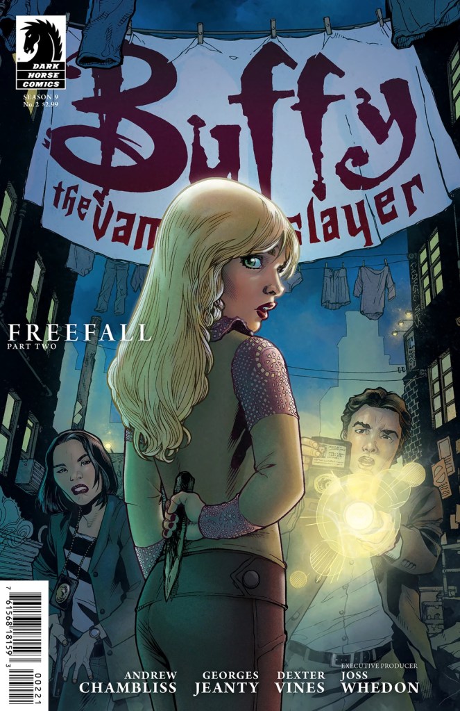 Getting away from Spike to clear her head, Buffy knows deep down that she should be at home, tucked up in bed, getting ready to go to work and earn money to give to a demon wraith. But instead, she’s still out patrolling, keeping her ears to the ground, searching for information on who or what exactly is coming for her. Naturally, as she patrols, she comes across a vampire chasing a young man.