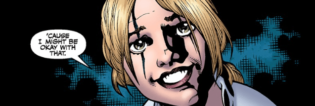 Buffy looks up at the young man. He has black floppy hair, dark eyes and is clearly younger than her. “You trying to put me out of a job?” she asks him. Then, suddenly, she grins, an idea forming.