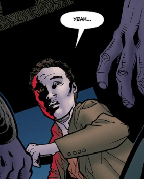 Severin holds onto the vampire and asks where Alessandra is. His hands start to glow and Severin warns the vampire that if he doesn’t tell him, his fangs are going to disappear for good, but it’s too late. The vamp is gone, and only a human corpse remains. A voice comes out from the side of the alleyway. A person, draped in shadow, tells him that he’s blaming the wrong person for Clare’s death. He isn’t looking for a vampire. He needs to find the Vampire Slayer. Severin grins at his new acquaintance as they step forward. His new ally tells him that her name is Buffy Summers.
