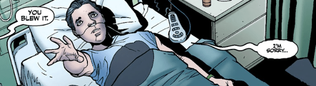 In the hospital, Severin is in a bad way. He’s weak, pale and bruised, hooked up to machines. His ally comes to visit him and he reaches out in comfort. He explains that he got shot and that he needs a charge to heal. His ally backs away from him, telling him to not touch.