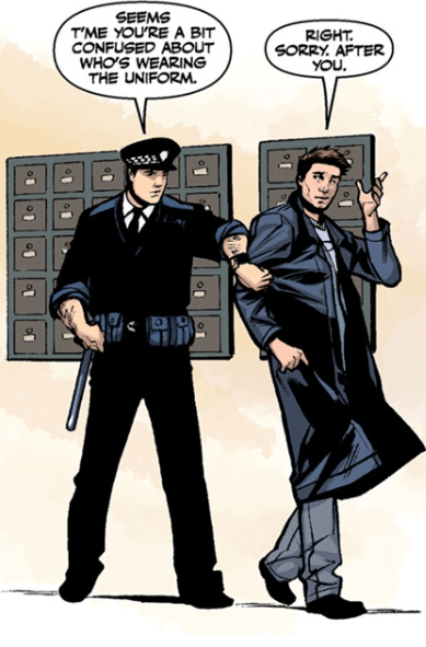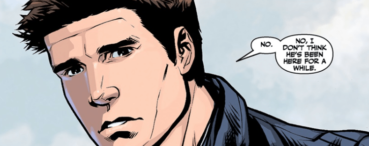 The police officer thanks him, complimenting Angel on his moves. But then he asks if one of the victims is Angel’s friend, the one he was here to see? Angel muses. “No,” he says, “No, I don’t think he’s been here in a while.”