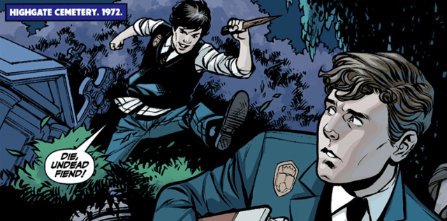 Highgate Cemetery in the dead of night. The year is 1972. Rupert Giles is running, as usual, for his life. He clutches his precious books, prepared early for class – he would much rather be in class than running through a cemetery. And his stake-wielding pursuer? Not the sharpest tool in the shed. He briefly considers the absurdity of his situation before focusing on the more pressing matter: survival.